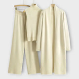 Descubre el estilo sin esfuerzo con nuestro conjunto de tres piezas, que incluye unos elegantes pantalones, un cárdigan y un top refinado. Este conjunto combina comodidad y elegancia en perfecta armonía, convirtiéndose en una opción ideal para looks versátiles que destacan en cualquier ocasión.