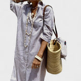 Carla – Vestido Elegancia a Rayas - Khaki / S - Vestidos